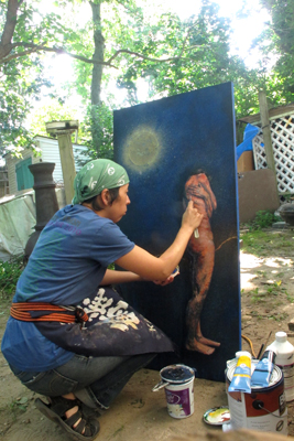 Born and raised in Fukuoka, Japan. I came to the US in 1997, since then I've lived in Long Island, NY, New Brunswick, NJ, and now in Central NY. I received a BFA and an MFA in theatre set design. Working in theatre industry as a freelance scenic artist and set design assistant for 20 years. In 2006, I started making collage, and participating arts and crafts shows. 'Gozelski' is my married name. In 2016, I left suburban life on Long Island, and moved to a country in Central NY with Hobo, Pit Bull mix. Hobo died in May 2021 at age of 16, now I'm living with 5 chickens. Growing veggies, collecting fresh eggs daily, meeting friends at farmers markets and art shows, who could ask for anything more?